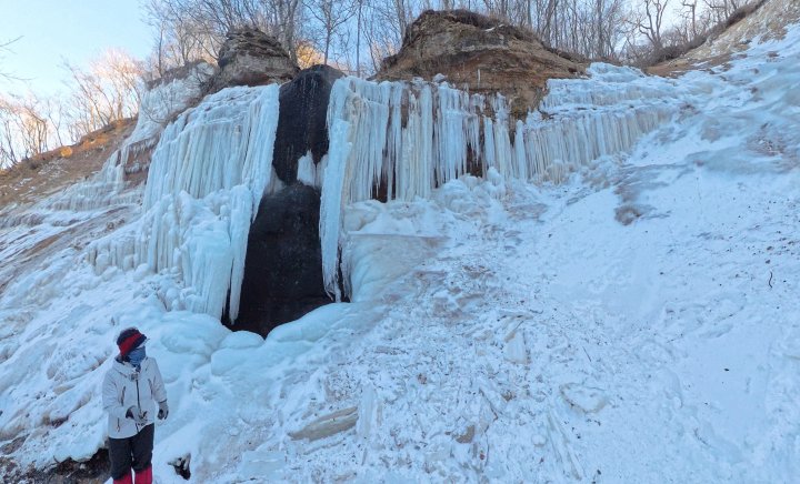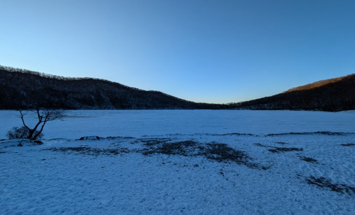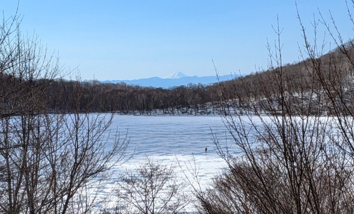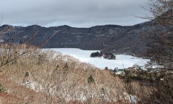 ガッツリと氷におおわれています。こちらの氷上を歩きます。