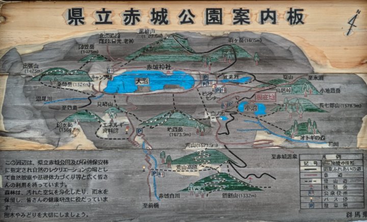 ①小沼駐車場-3分→②小沼-③25分→④赤城氷瀑-⑤40分→⑥長七郎山頂-15分→⑦小地蔵岳-⑧7分→①小沼駐車場
