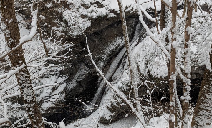 氷瀑自体はそれほど大きくなかったですが、冬枯れの木々の隙間の滝壺は、この時期にしか出会えない特別な雰囲気です。しっかりとした防寒と装備で!