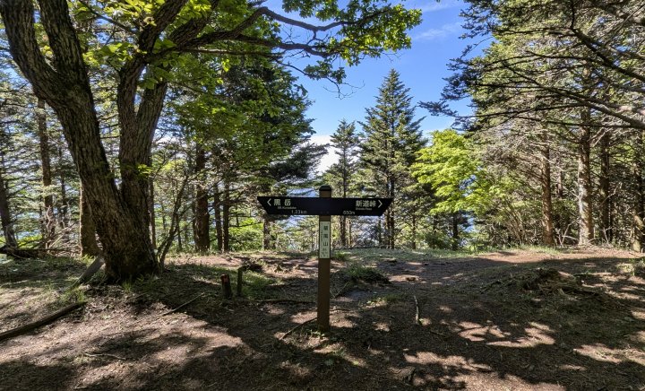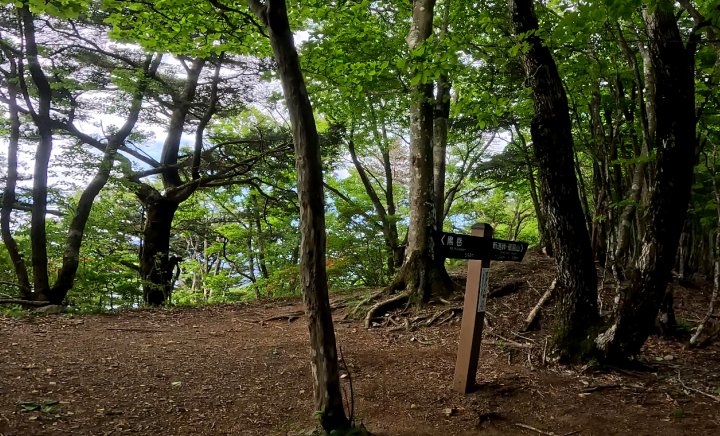 ④黒岳山頂は木が多くて眺めはありません。南側に下ると絶景ポイントがあります。