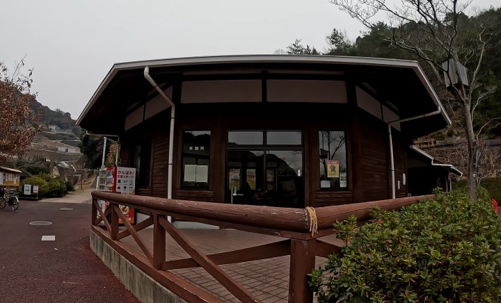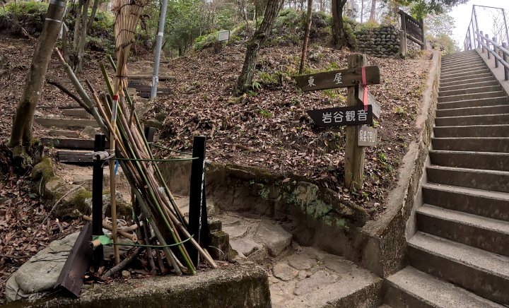 岩谷観音方面へ。山道は途中から黄色い砂に覆われた道になります。