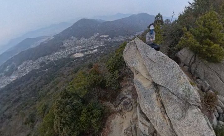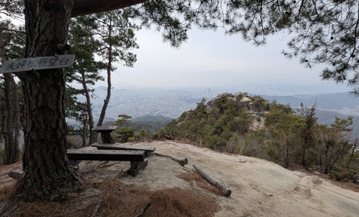 先ほどのハート岩のピーク越しに広島の街を見下ろせます。
