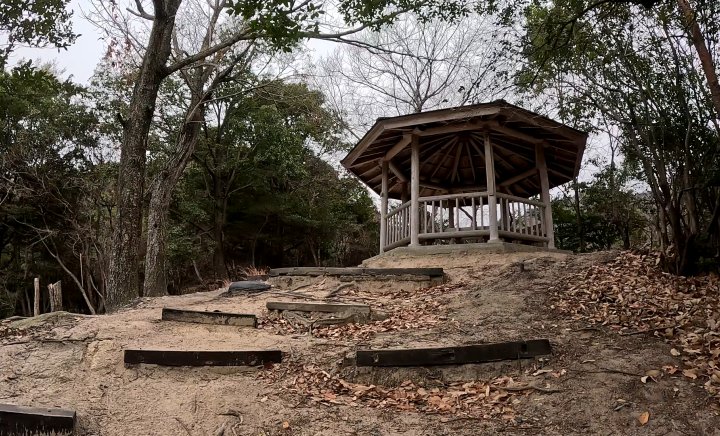 ①みくまり峡森林公園駐車場-②10分→③山道入口-④50分→⑤高尾山頂-40分→①みくまり峡森林公園駐車場