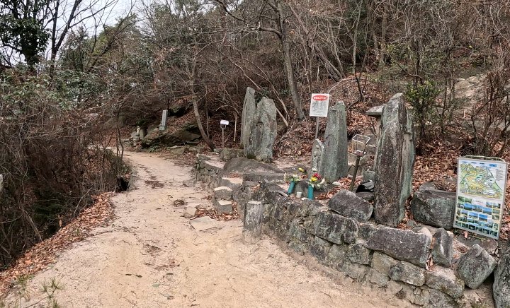 広島市街の北東方向にある高尾山(たかおやま)は、奇岩や石仏の宝庫で、山頂付近はちょっとしたアスレチック感も味わえるお手軽な山です。