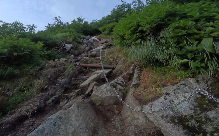 小屋から中盤以降は、岩壁の鎖場など出現