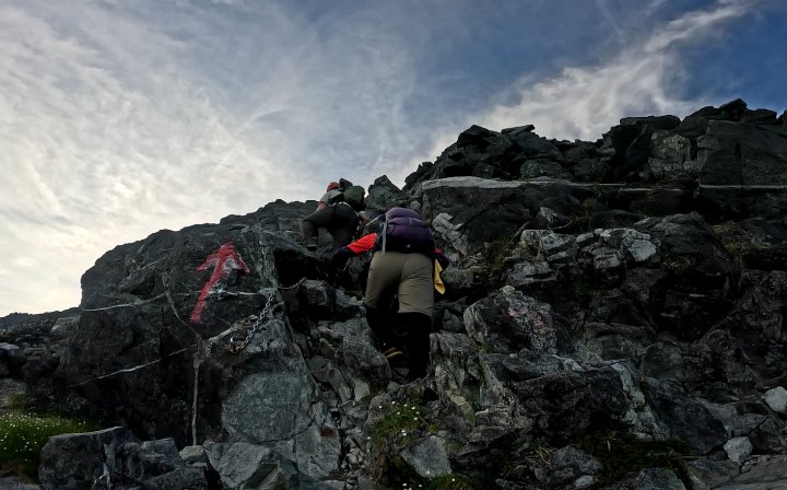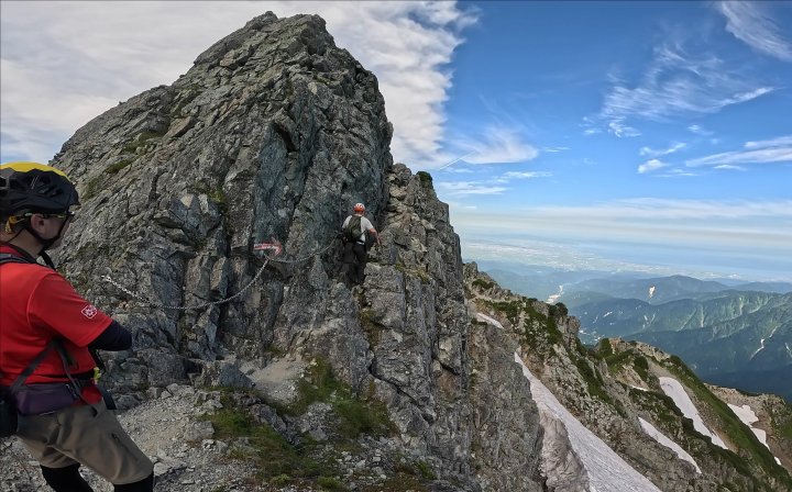 早月小屋が近づくと、鎖場も現れる。