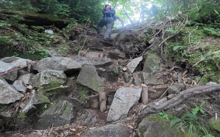 山道は終始、急な登りも続き、後半のゴツゴツのハードな岩稜歩きは、かなりの登りごたえのある山行。
