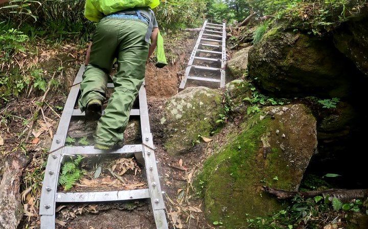 早月小屋が近づくと、金属のハシゴが現れはじめる。