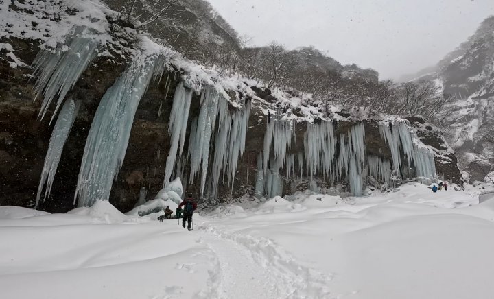 栃木県日光市にある雲竜渓谷は、厳冬期に渓谷沿いに見事な氷柱が多数しゅつげんするスポット